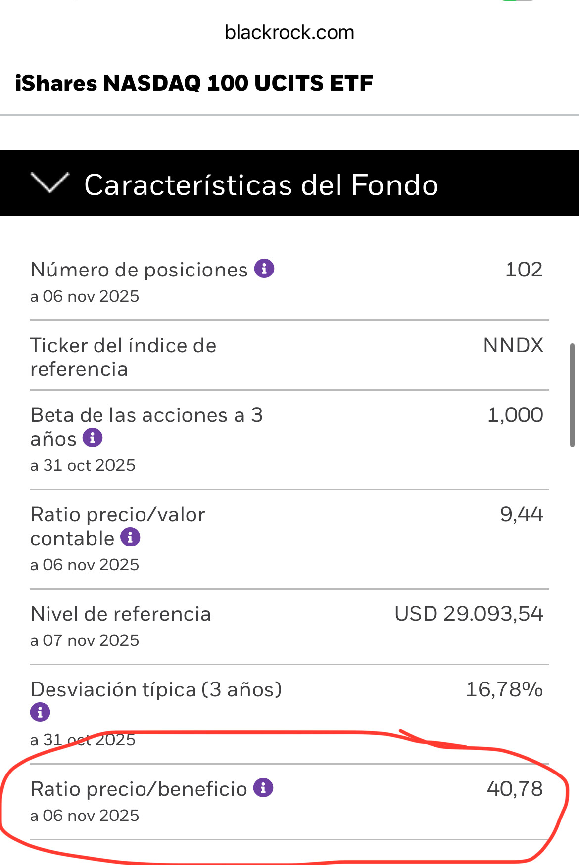 Puestos a comprar un indexado a 23 veces (S&P) beneficios con empresas que están a 20 y no crecen (no hablo de las tech), casi que mejor pagar 40 en base a los últimos 12 meses y 28 sobre los 12 siguientes, metiéndolo al Nasdaq: