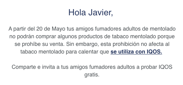 Es publicidad de Iqos, pero por si interesa el dato, sobre los mentolados y demás.