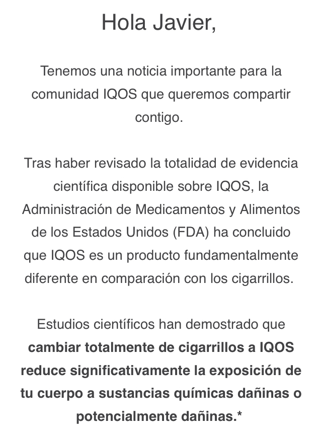 Esto antes no existía, y en la práctica es publicidad gratuita, sobre todo de la mano del sistema de afiliación. Tienes al usuario de IQOS, que sabe que si convence a un amigo fumador de que lo pruebe se va a ahorrar a futuro unos euros en productos de la compañía, y le das argumentos para que los utilice al hablar con los no iniciados. Incentivos más convicción argumental, mix poderoso.