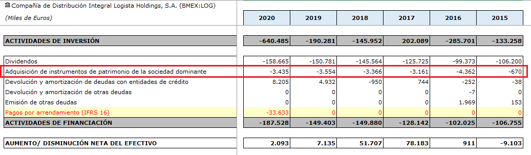 Gracias @camacho113 por la información. La verdad es que todo lo que has puesto ya lo he revisado, pero ni así consigo resolver la duda. Mi conclusión inicial era que quizá, y un poco como tu comentas, como contra fondos propios se pueden meter apuntes contables por variación en los cálculos de ciertos activos, quizá la liquidación por los incentivos contra reservas es mayor del valor que sale de la partida de acciones propias porqué las acciones propias se recompraron a un precio inferior al que se han entregado finalmente a los empleados. Porqué el ECPN es muy claro en que la línea a tratar es de operaciones con acciones propias y referente al plan de incentivos. Es decir, me pregunto si seria posible que se recompraron tantas acciones a tal precio para hacer frente al plan de incentivos, y en el momento de liquidar tal incentivo las acciones han subido en el mercado y por tanto se tienen que entregar las acciones a los trabajadores a ese precio y Logista debe abonar la diferencia tirando de reservas. ¿eso seria posible? Es que era mi pensamiento pero haciendo cálculos con los datos de acciones entregadas etc no consigo llegar a tal punto, por eso preguntaba por si alguien lo sacaba o lo sabía.