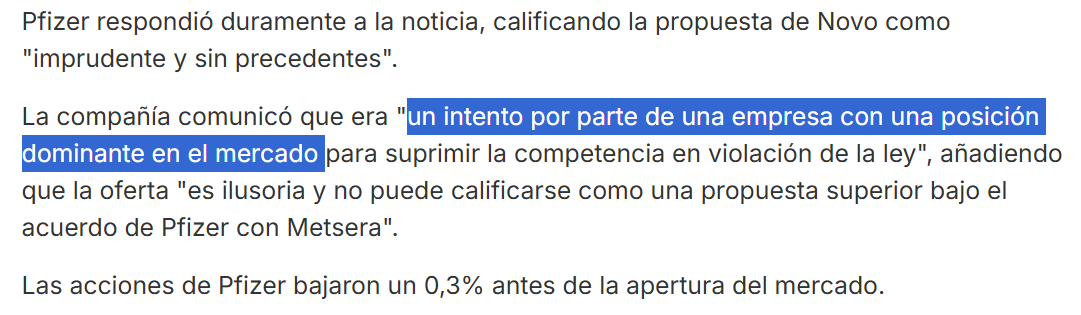 Novo ofrece casi el doble por ella… Será para incordiar a pfizer?