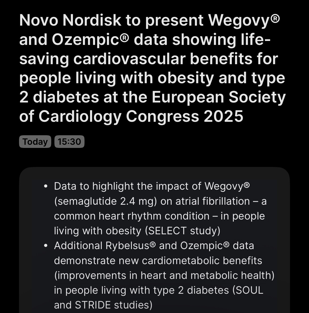 - Aprobación en MASH (hígado graso) → las aseguradoras cubrirán Wegovy, ampliando su mercado.