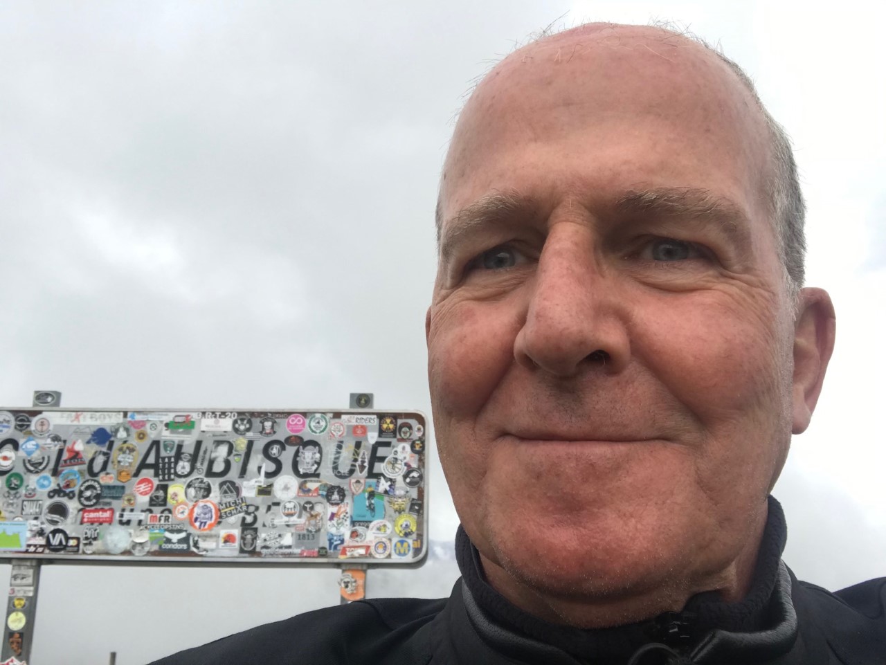 Les aseguro que salvo el selfi del postureo, la diferencia que se ve no obedece a preparación alguna, salió así. Estoy igual de viejo en las dos, pero no sé, me veo distinto. Acababa de ultimar el tramo que une el Coll de Soulor con el Aubisque. Aquí el perfil de la carretera, foto que tomamos todos, es un clásico, todos conocemos el punto donde tomarla, al milímetro, es ese hilillo picado en el risco. Ya había pasado lo más complicado, solo quedaban el Marie Blanque y el Somport, más sencillos, hay que calcular bien los esfuerzos, aquí manda el indio y ese soy yo.