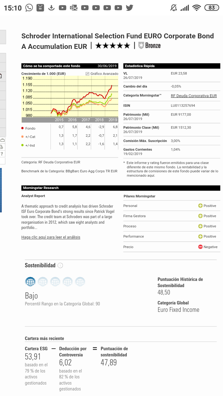 Si, el Schroeders Corporate ha subido una barbaridad, y pasa del +8 YTD, mientras que muchos estan entre +5 y +7. Eso si con este burbujon él yield ronda el +1.5