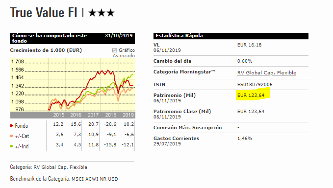 Sobre lo que pregunta, sí, en su comunicado oficial la gestora True Value, anuncia la creación de un producto de “empresas pequeñas” y un volumen del fondo de 100 millones máximo. Pero no han dicho nada de la capitalización de las empresas del nuevo fondo. Haciendo una comparación entre fondos orientados hacia las “pequeñas empresas” o que inviertan en estos momentos en ellas: