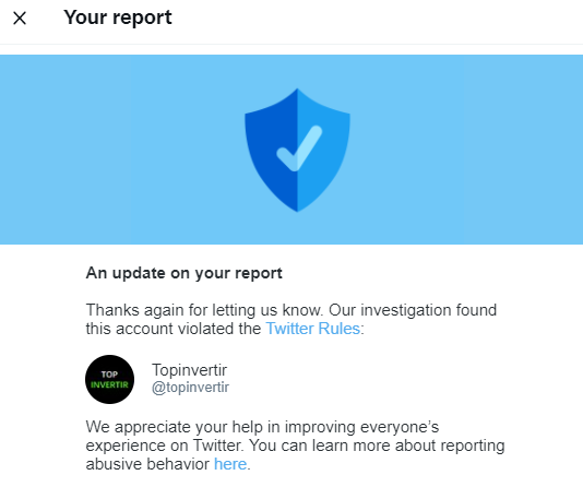 Resolución de la última denuncia que hice, del último vendehumos que encontré publicitándose en twitter: